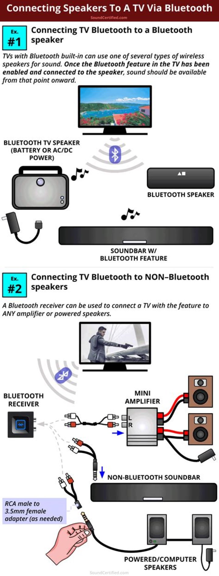 What are the steps then? Get an amplifier and plug it into the TV set – the audio out port or the HDMI one. Stick the speaker into the amplified speaker output. You can use one or more speakers. Once all the connections are made, the TV will send the signal to the amplifier, which will pass it to the speakers.