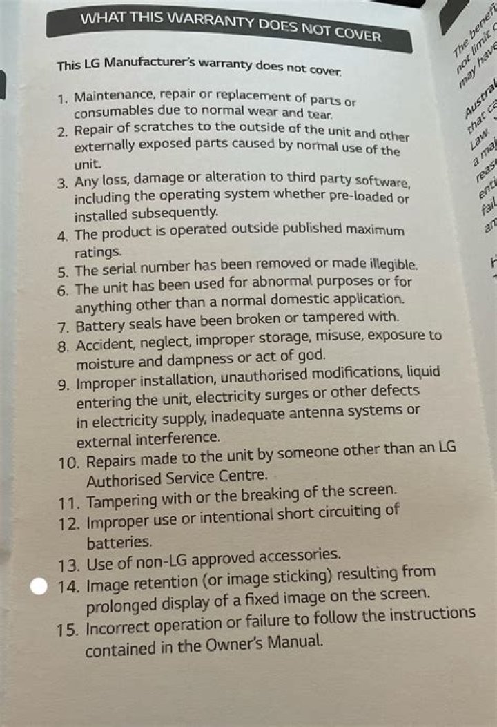 Does LG OLED warranty cover burn in?