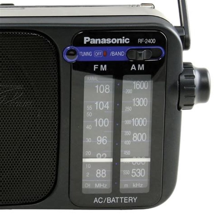 The Panasonic rf-2400 portable AM/FM radio Features a large, easy-to-read radio dial with a separate scale for AM and FM tuning and a built-in LED indicator for low-light tuning. It’s equipped with a ferrite rod AM antenna, a telescoping FM antenna, and 4″ Dynamic speaker for delivering crisp, high-quality sound.