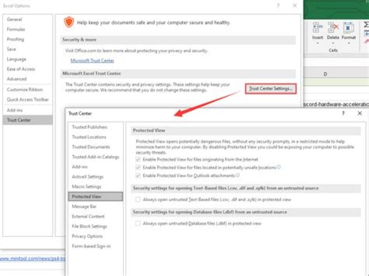 How to change protected view in trust center?