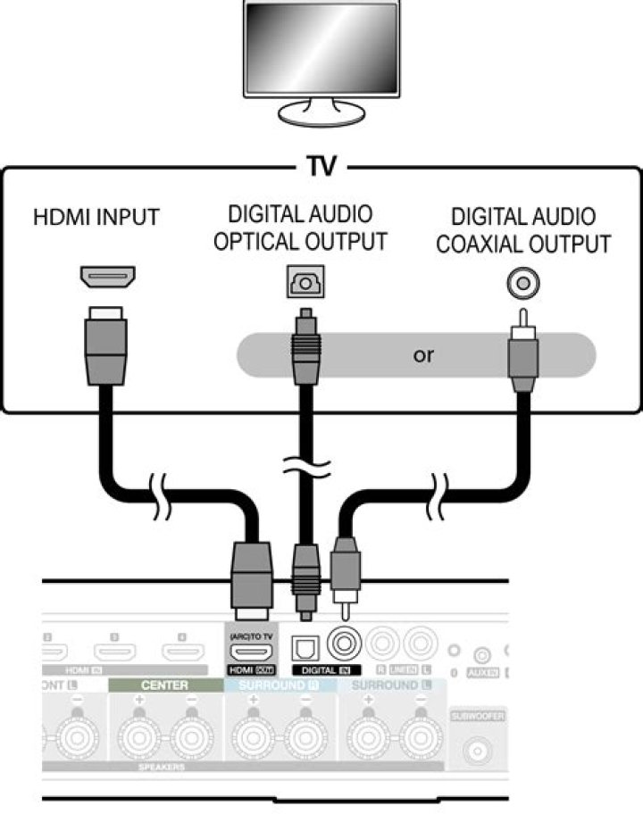 The two most common connections used to hear TV sound from the A/V receiver or home theater system speakers are: Which option you use will depend on the connection ports on your products. If your TV and audio system both support the ARC feature, we recommend using Option 1 to connect your products, otherwise use Option 2.