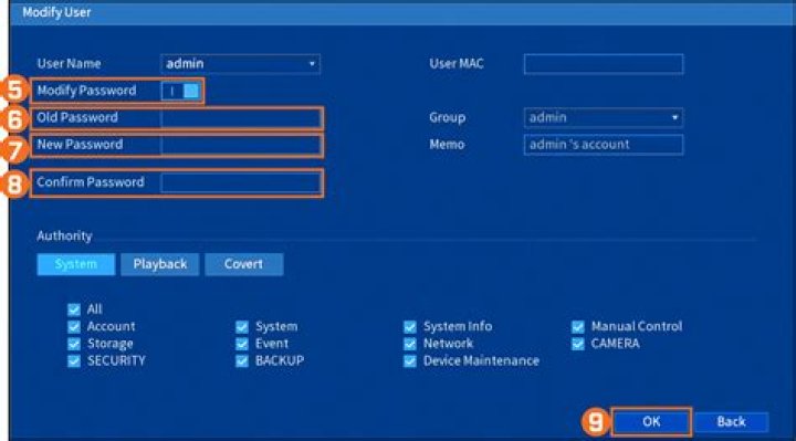 - In the Modify User settings, turn on Modify Password.