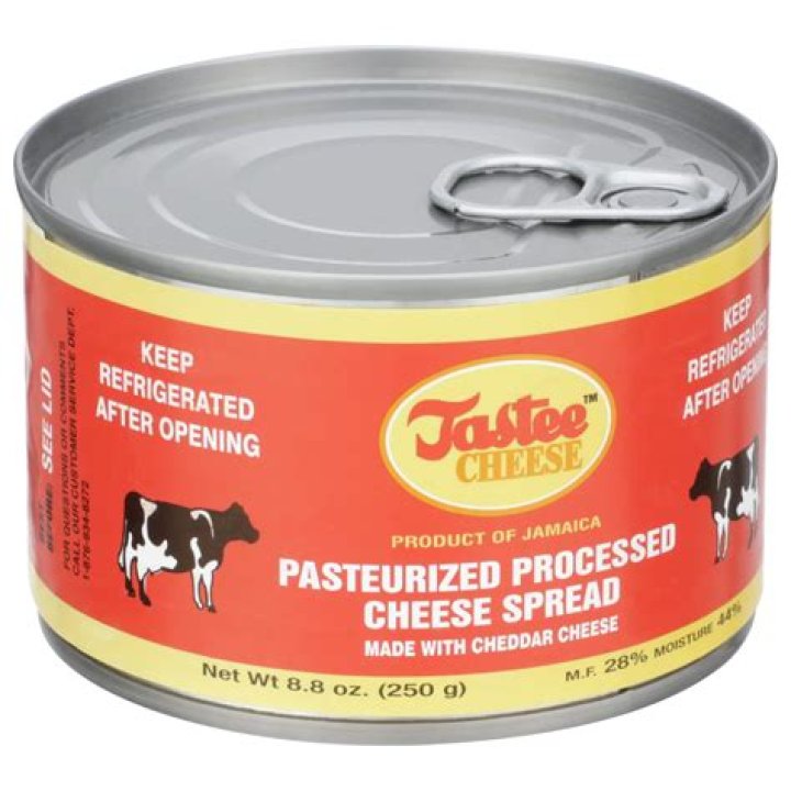 Made from top quality cheddar cheese from New Zealand, Tastee cheese is a blend of the finest cheese which gives it its unique taste. To Open: Hold can, grip centre tab and pull back slowly. Keep refrigerated after opening….Grace Jamaican Tastee Cheese.