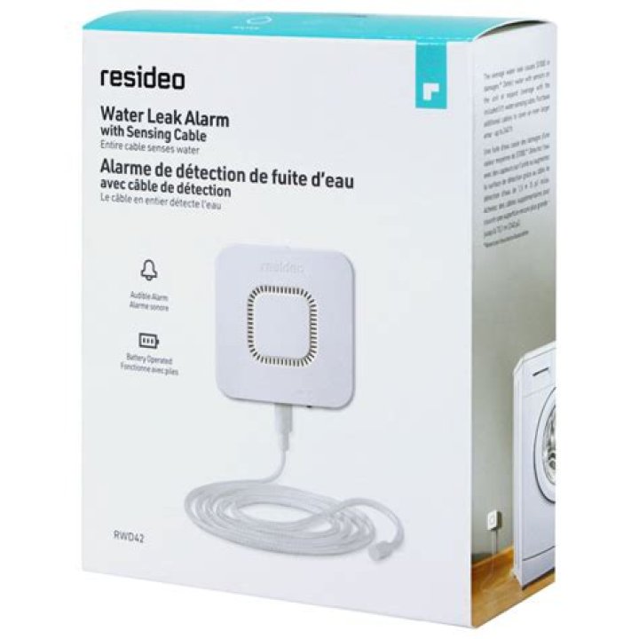 The Honeywell RWD42 water defense water-sensing alarm offers superior protection against leaks and water damage near potential trouble spots close to plumbing around the home or office. Patented 5-foot cable solution extends the detection zone offered by traditional spot detectors by 3100%.