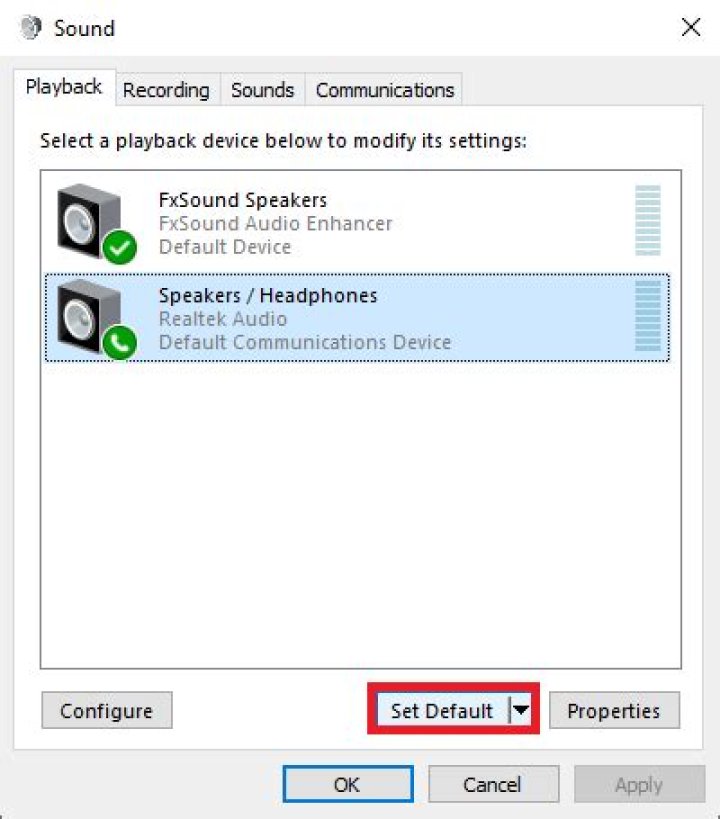 Check your device properties to make sure that your devices have not been disabled by mistake. Select Start > Settings > System > Sound . Select your audio device, and then select Device properties. Be sure to select Device properties for both the output and input devices. Make sure the Disable check box is cleared for the output and input devices.