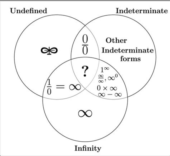 Note that {\\displaystyle 0^ {\\infty }} and other expressions involving infinity are not indeterminate forms . {\\displaystyle 0/0} is particularly common in calculus, because it often arises in the evaluation of derivatives using their definition in terms of limit. {\\displaystyle 0/0} is an indeterminate form.