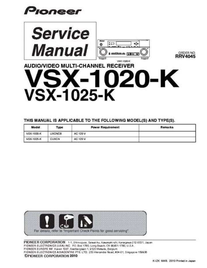 Product Name: AUDIO/VIDEO MULTI-CHANNEL RECEIVER Model Number: VSX-1018AH-K Responsible Party Name: PIONEER ELECTRONICS SERVICE, INC. Address: 1925 E. DOMINGUEZ ST.