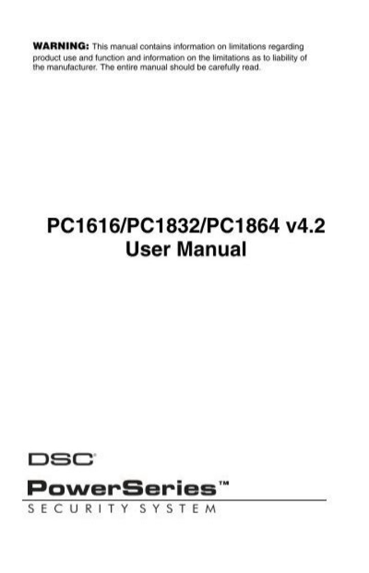 WARNING: This manual contains information on limitations regarding product use and function and information on the limitations as to liability of the manufacturer. The entire manual should be carefully read. PC1616/PC1832/PC1864 User Manual