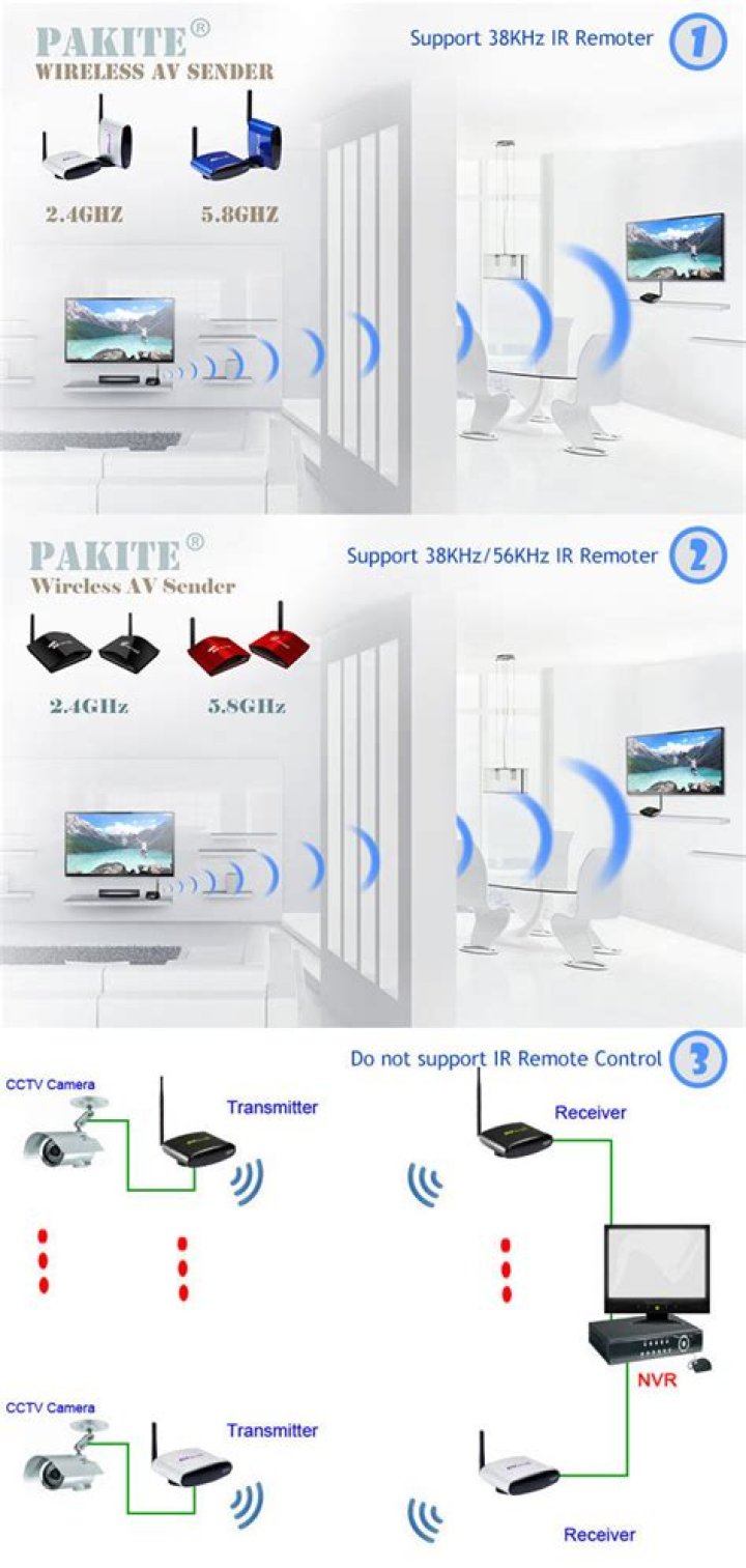 Video senders (also known as AV senders) allow you to send TV signals around your home without wires. They use radio waves to send the signals, and you need a transmitter and a receiver. You can use a video sender with a Freeview box, Sky Digital satellite TV box, DVD player, or a home security system.