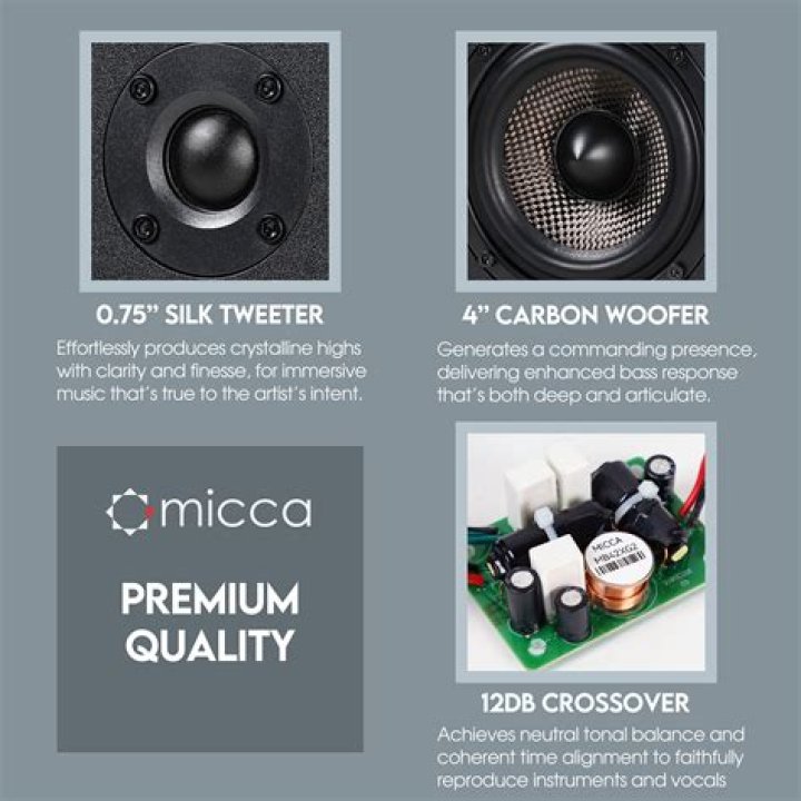 The Micca RB42-C is a handsomely styled center channel speaker that delivers a level of performance that belies its affordable price. With… The Micca RB42 bookshelf speaker celebrates music reproduction in a handsome package, delivering the next step up in compact speaker…