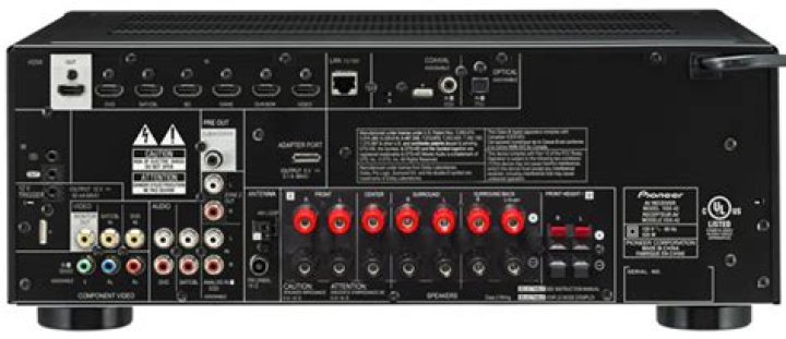 Unlike many AVRs—including Pioneer’s pricier models—you can’t dedicate the back-surround amplifiers for Zone 2 speakers, though they can feed a second room as B speakers that will mimic whatever is on in the main room. The difference is in the ability to select independent sources for the Zone 2 output and independently control the volume.