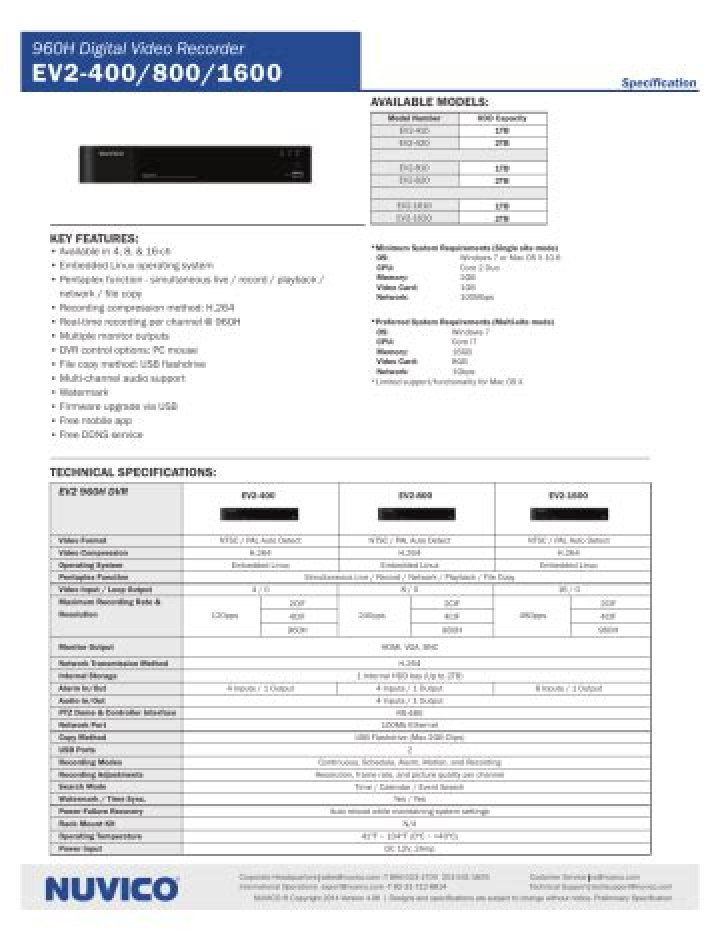 NUVICO, INC. 53 Smith Street, Englewood, NJ 07631 Tel: (866) 523-1700… This Digital Video Recorder’s warranty is only effective in the country of sale. If a problem arises while the DVR is in use abroad, please convey it back to the country of sale before proceeding with a warranty claim to NUVICO customer service. – 3 -…